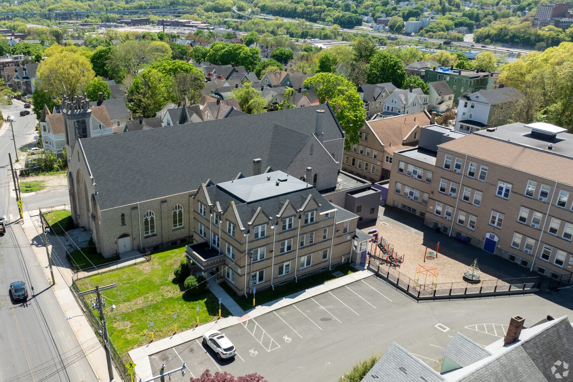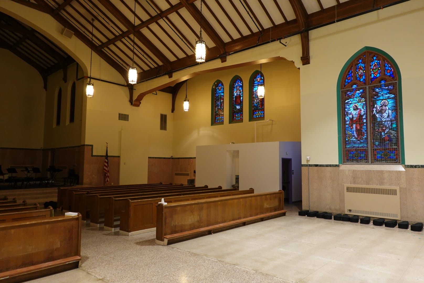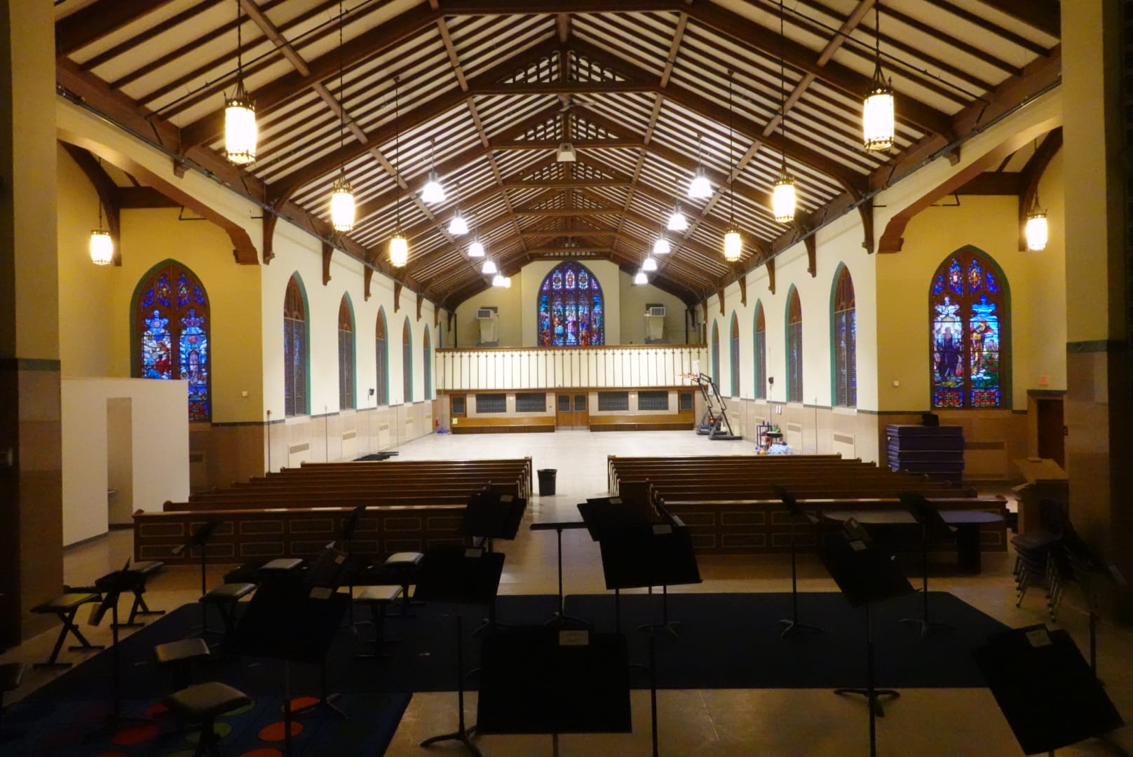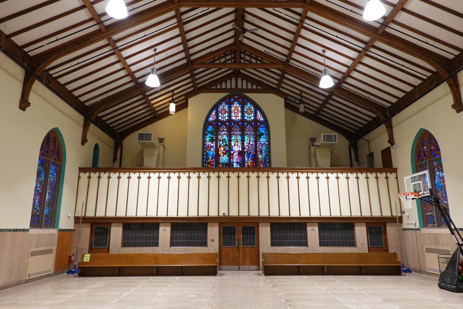 Montagno Construction renovated various components of a decommissioned church campus into a functional space for Brass City Charter School, transforming it into a gymnasium, cafeteria, offices, and classrooms, along with performing necessary code compliance work. Much of the renovation was carried out during a summer shutdown, but the project continued while school was in session. As construction manager, Montagno Construction provided multiple budget revisions to accommodate fluctuating funding commitments and supervised over $5,000,000 worth of work within a 12-week period. The completed space includes a gymnasium and locker rooms on one side, with a music studies area located on the opposite side of the former sanctuary.