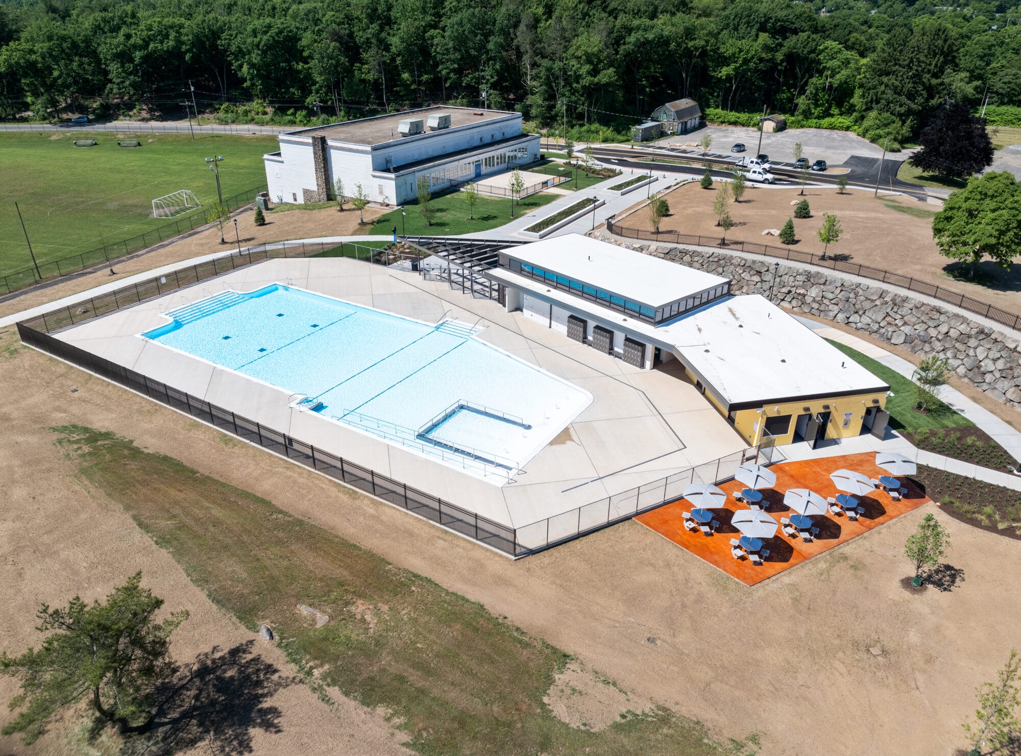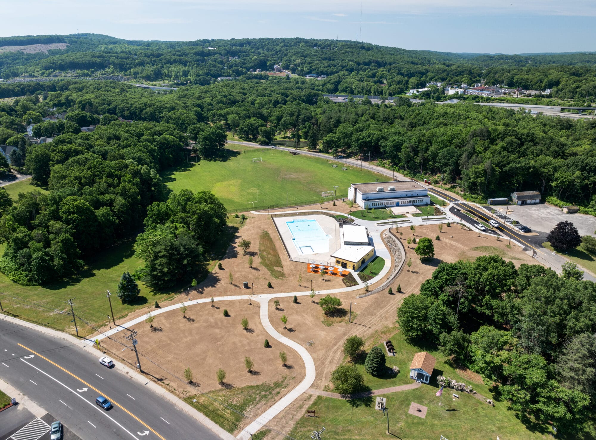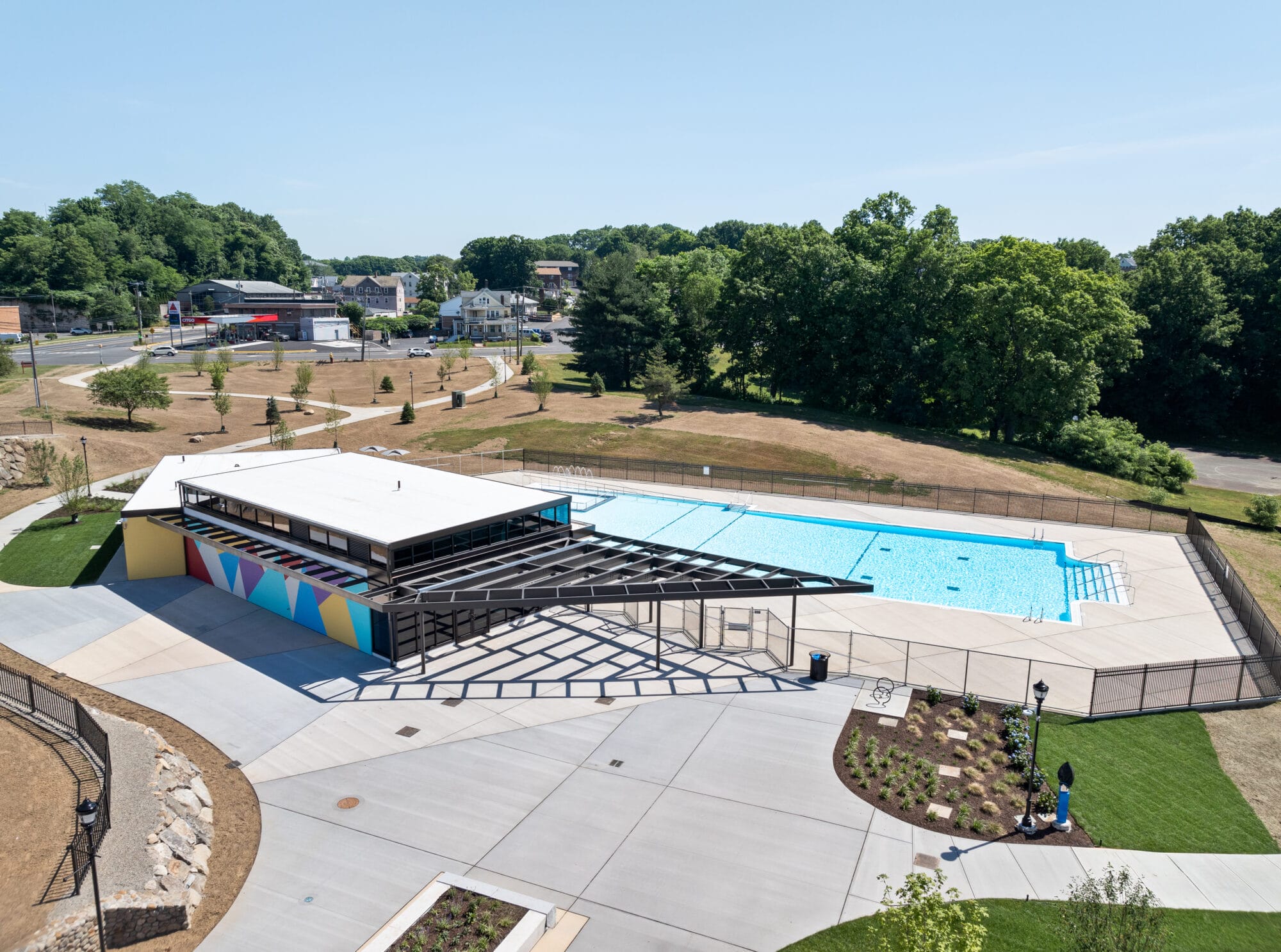 Hamilton Park Pool underwent a transformative renovation that introduced a new 7,500-square-foot pool and a completely upgraded pool house with modern amenities. Enhancements include ADA-accessible features, a family-friendly kiddie pool, and refined safety infrastructure like improved fencing and sidewalks. A new promenade near Seven Angels Theatre adds visual appeal and connectivity, while vital plumbing, electrical, and mechanical systems were overhauled to support long-term use.