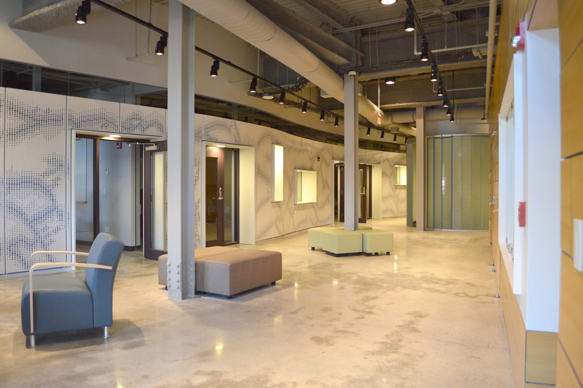 Montagno Construction transformed the fire-damaged, abandoned St. Patrick’s Hall into a vibrant, multipurpose facility for the University of Connecticut Waterbury. This 4-story building underwent a complete gut-rehabilitation and historic restoration, which included the construction of a new roof structure, the installation of an elevator, and a 6-foot-wide, 4-story addition to expand restroom facilities. The exterior masonry was carefully restored, and all new electrical, plumbing, HVAC, and telecom systems were installed. The interior features high-end windows, doors, fixtures, and unique architectural details, including curvaceous walls and two distinctive ovoid conference rooms. Today, St. Patrick’s Hall serves as a dynamic space for UConn Waterbury, housing lecture halls, event spaces, adjunct professor offices, and a publicly accessible Starbucks.